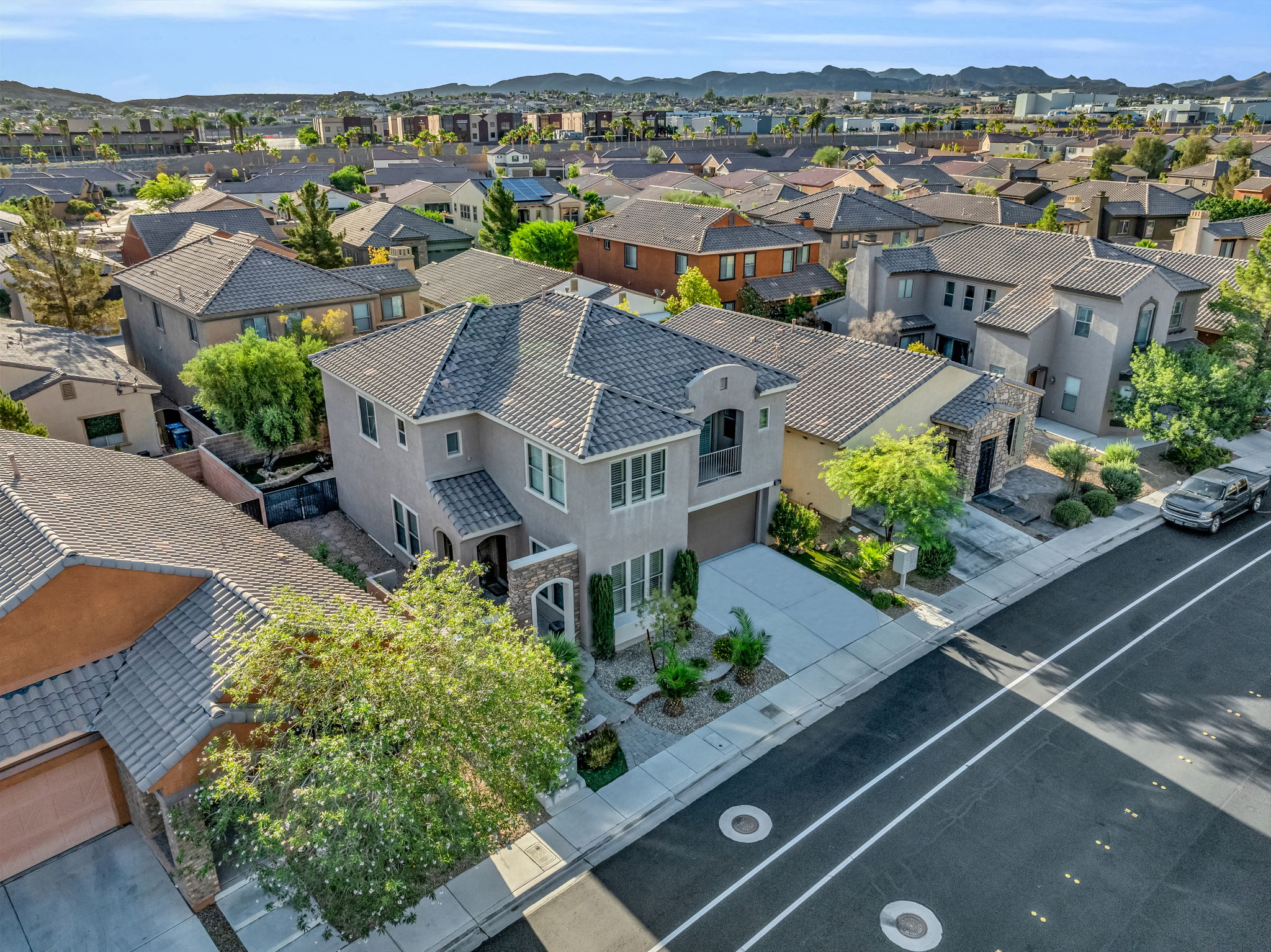 Live the life of luxury guard gated Tuscany Estate at Chimera Golf Course with On-Site Restaurant, Pro Shop, & Event Pavilion with unobstructed golf course & Las Vegas Strip views, Resort-style 28,000 sqft clubhouse include extensive waterscape pool, spas, lap pool, exercise facilities, locker/dressing rms/showers, racquetball, basketball, lighted tennis courts, bbq areas, parks, dog walk areas, too much to mention. This highly sought after 3 car tandem garage is an incredible home boasting dual living areas, gourmet style extended chef prep island, custom kitchen cabinetry, gorgeous formal dining, Juliet balcony from Private Master Ensuite enhanced with separate dual vanities, custom interior walk in closet, upgraded tiled separate shower and lavish featured soaking tub, exterior golf putting green & covered patio, oversized private laundry room w/cabinets & decorative shelving, secondary bedrooms upstairs with adored jack & jill bath, downstairs den/office could be 4th bedroom. This gem will not last long!